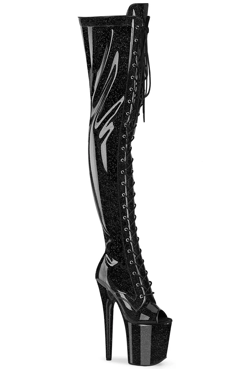 Brokatowe kozaki z odkrytym palcem FLAMINGO-3021GP Black Glitter Pat/M PLEASER