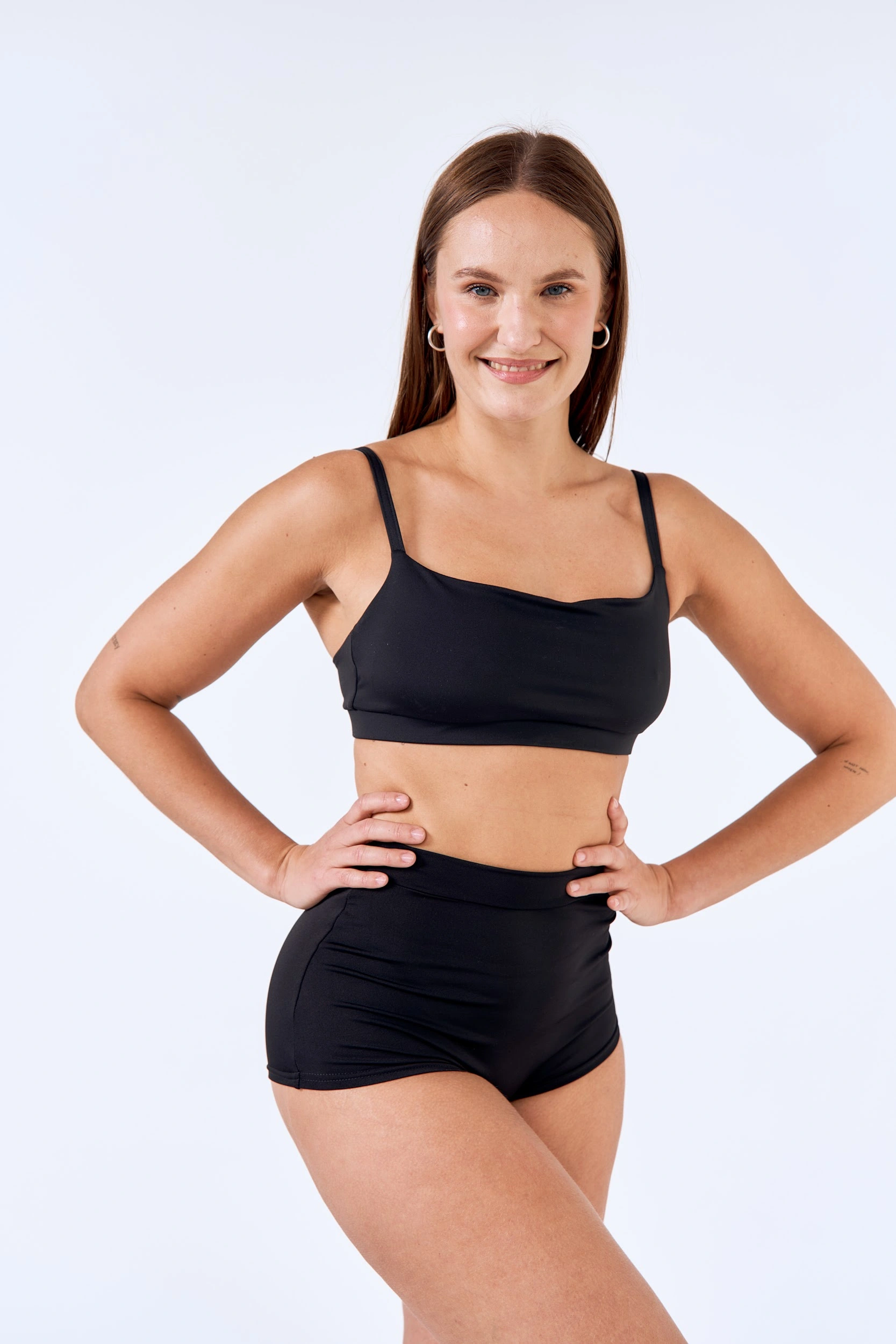Majtki pole dance czarne z wysokim stanem i marszczeniem BENG