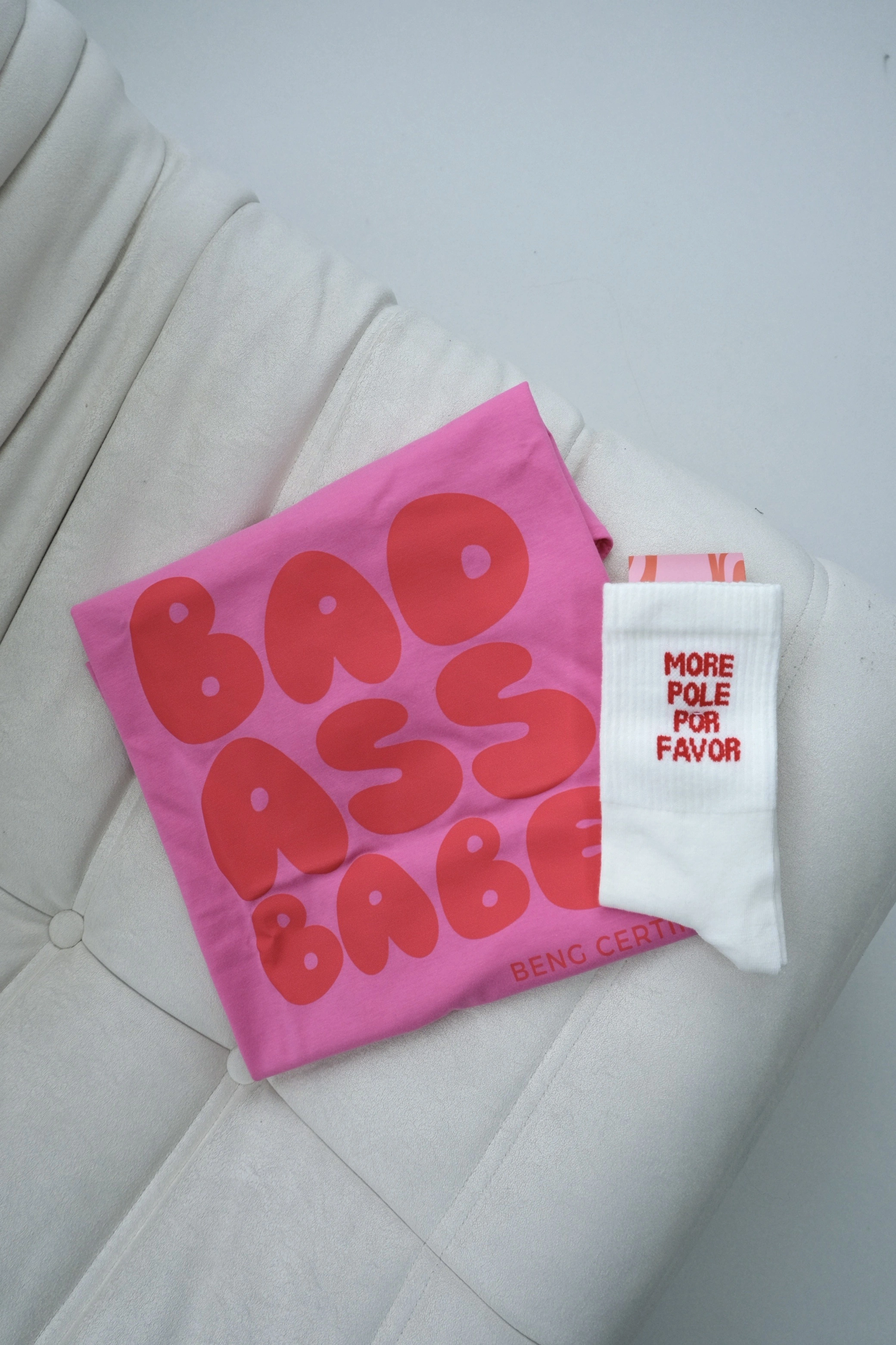 Idealny prezent dla fanki pole dance! T-shirt jest oversize, a skarpetki w jednym rozmiarze, więc bez obaw - na każdą z dziewczyn będzie pasował!